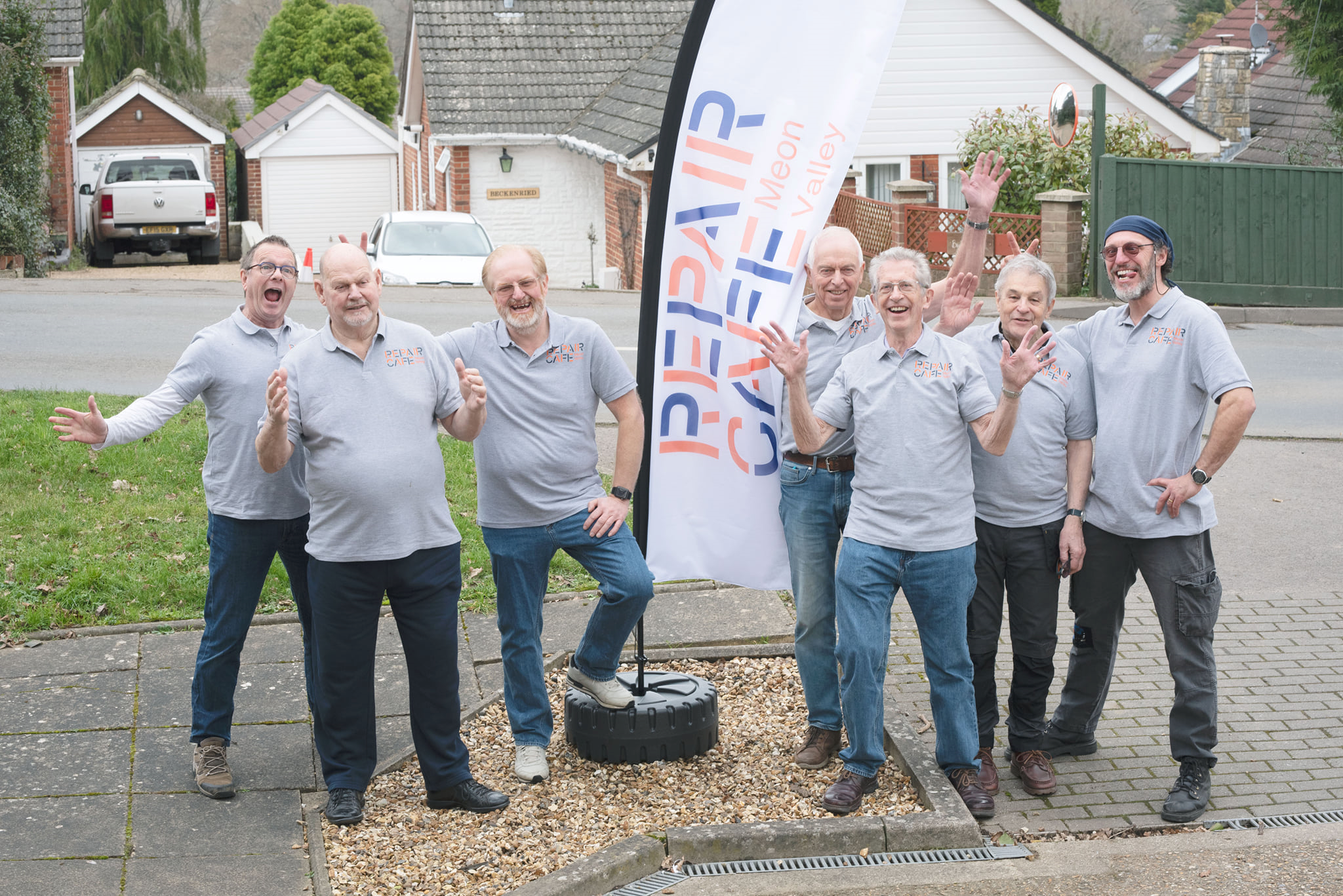 Repair Café Grand Opening L-R: Mark (“Tizz”), Sam, Neil, Steve, Martin, Eric, Mike