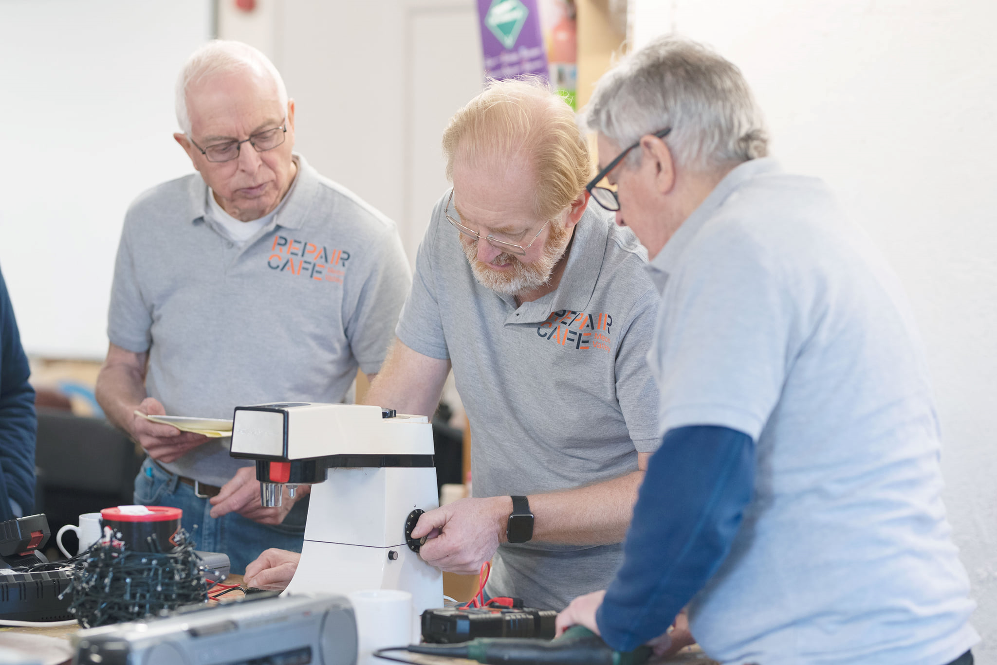 Repair Café - Steve, Neil and Eric with food mixer